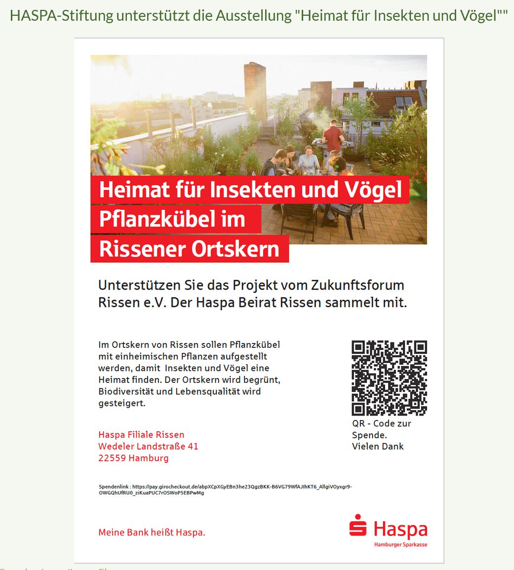 Pflanzkübel im Rissener Dorfzentrum mit Beispielen für heimische Pflanzen, die in jedem Garten stehen könnten, um Insekten und Vögeln eine Heimat zu bieten. Tafeln mit QR-Code regen mit Informationen zur Nachahmung an.